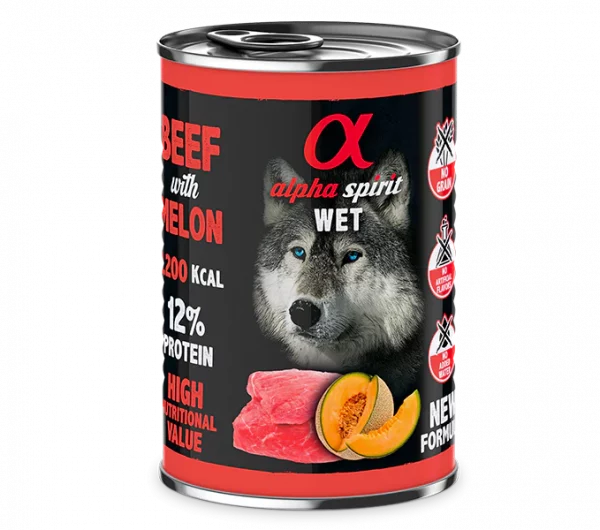 Ternera 93% (carne, hígado, pulmón, oreja), melón 4%, gelatina, pulpa remolacha molida, especias y minerales.