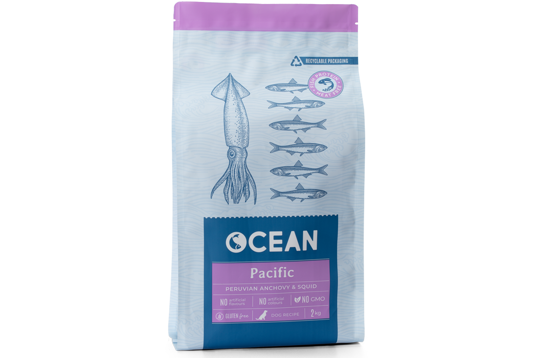El calamar es rico en proteínas y minerales y bajo en calorías, y la anchoveta peruana aporta proteínas de alta calidad y ácidos grasos omega3. Ambos ingredientes principales hacen que el Ocean Pacific sea un alimento óptimo para los perros con un nivel de actividad normal.